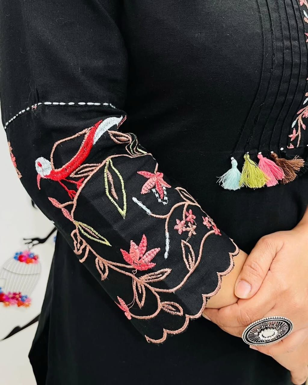 This embroidered cotton kurti pant set combines elegance with comfort, crafted from lightweight, breathable fabric ideal for all-day wear. Its intricate embroidery adds a refined touch, making it a fashion-forward choice for any occasion. Designed to offer both style and ease, this set ensures you stay comfortable without compromising on sophistication.