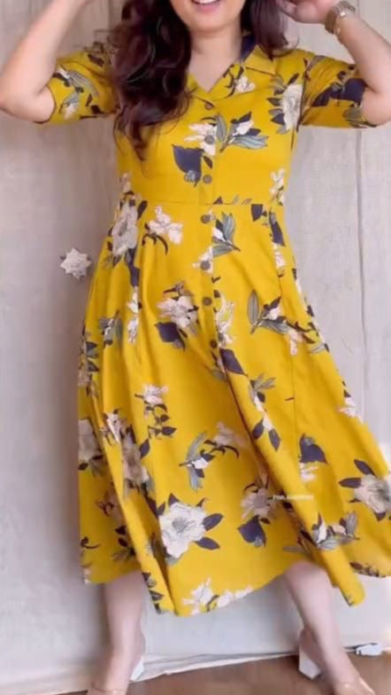 Crafted from soft premium poly cotton, this floral MIDI dress offers breathable comfort and a refined silhouette. Its delicate floral pattern adds timeless elegance, making it ideal for both casual and semi-formal occasions. The midi length ensures versatile styling options, combining sophistication with ease of wear. Perfect for those seeking quality fabric and classic design in one piece.